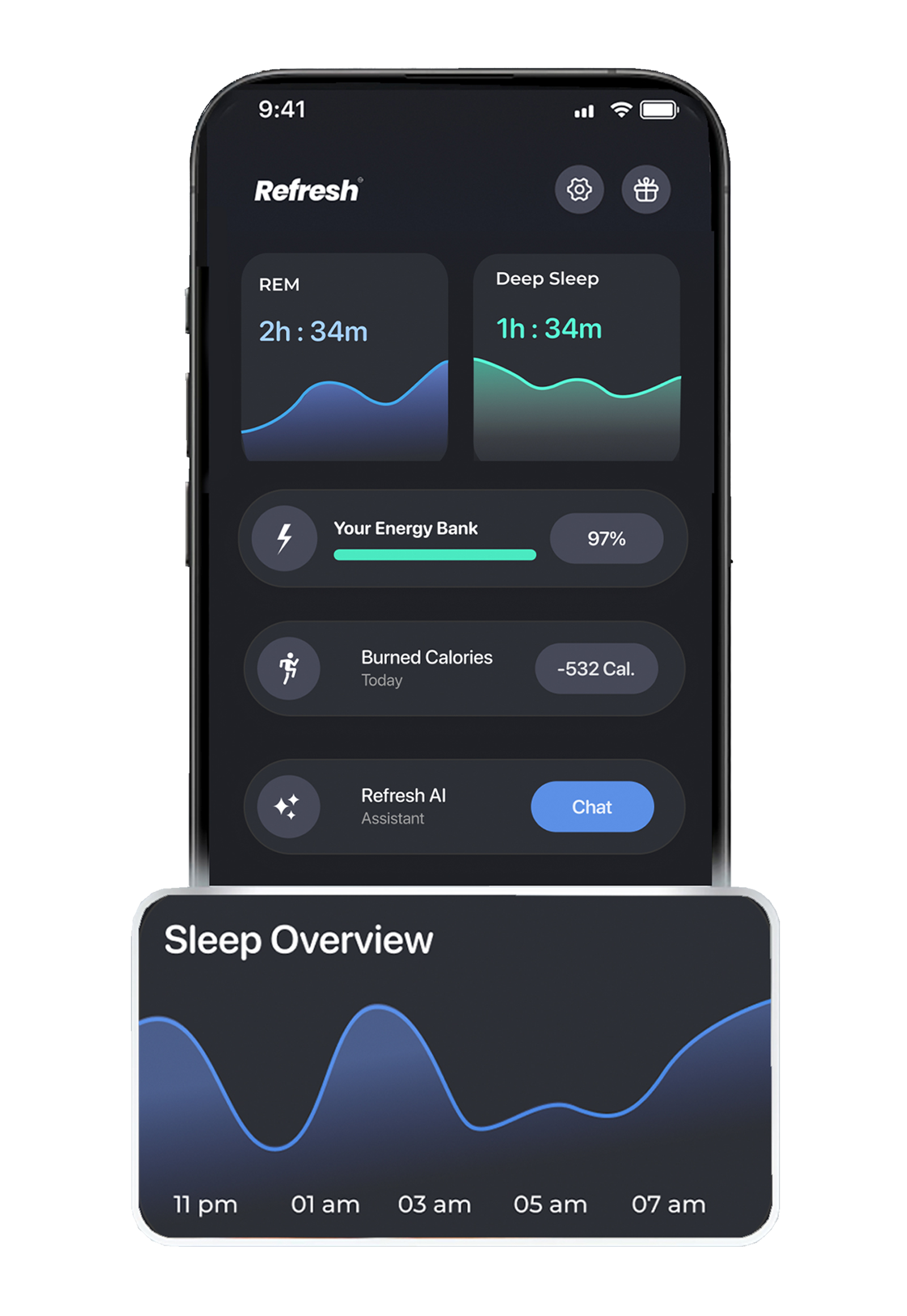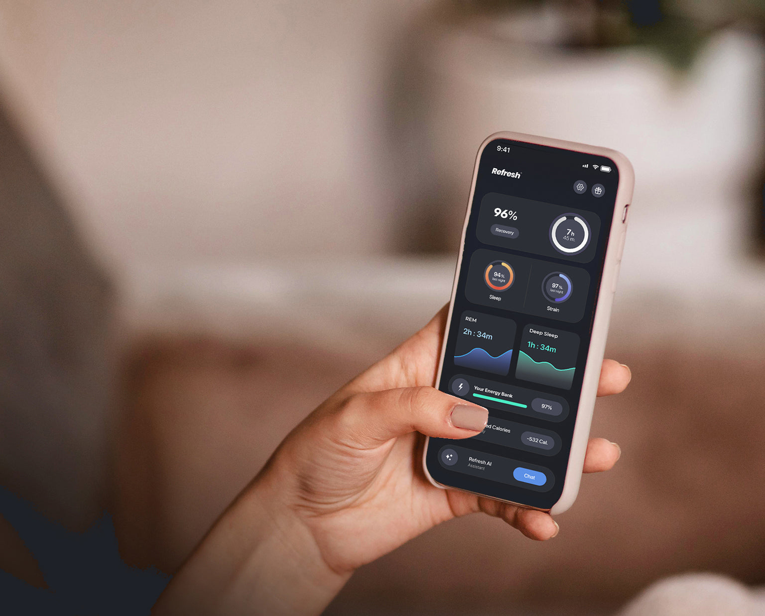 Refresh AI is the new personal assistant trained to give you best recovery advices so you can improve your sleep and fitness performance daily. It can answer any questions you may have on your recovery journey.