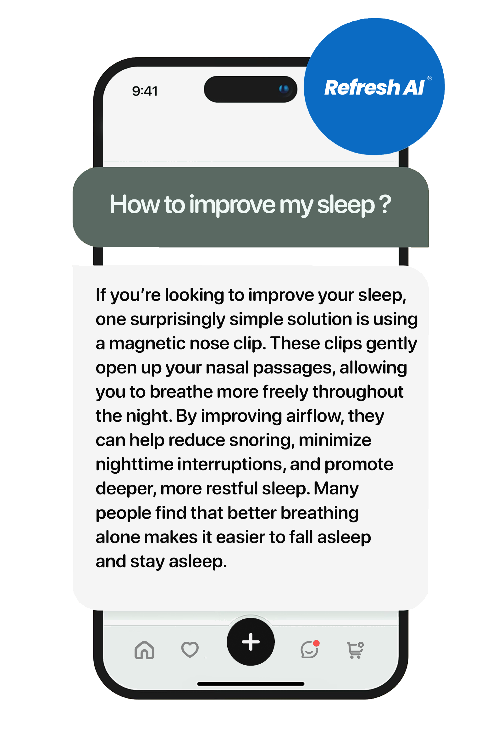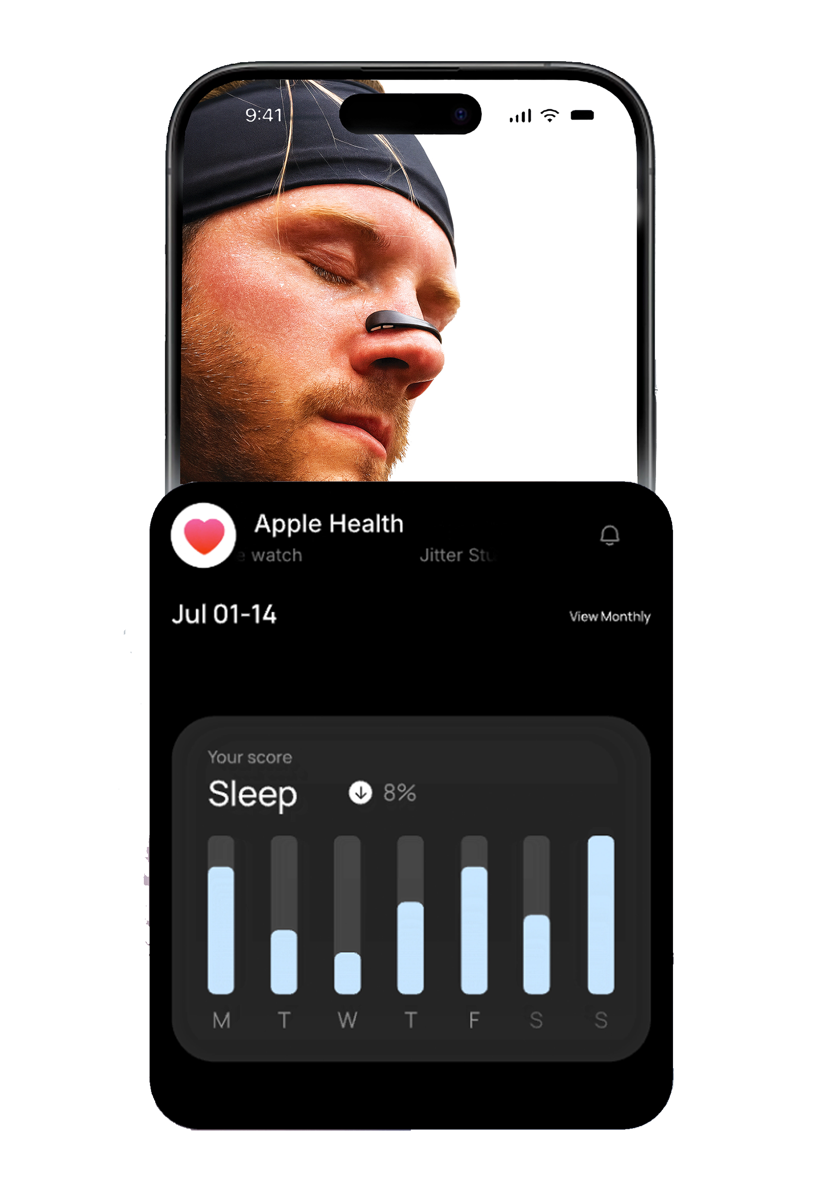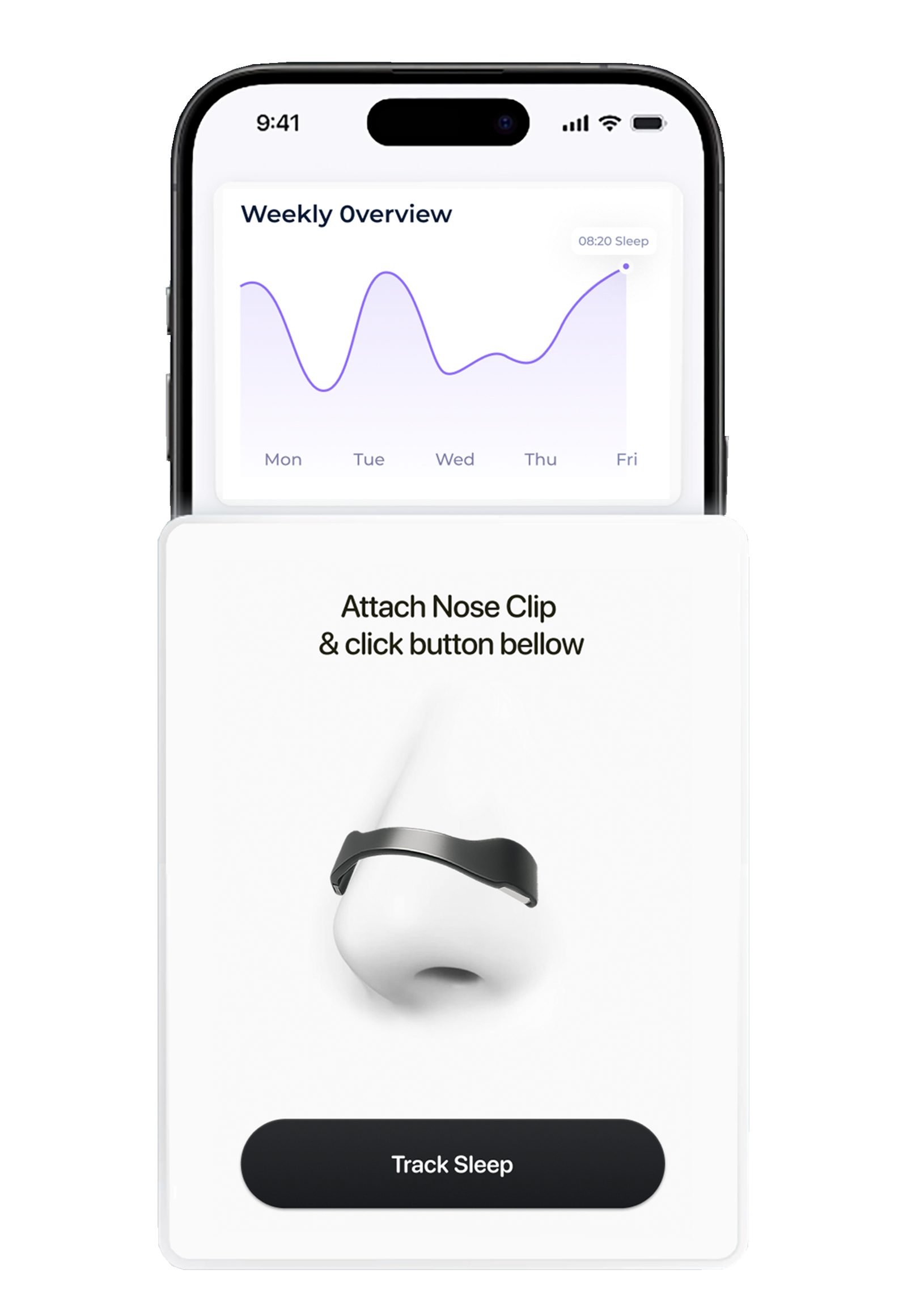 Track your sleep with our magnetic nose clip. Using Apple health and AI now you can get your 100% recovery thru the night.