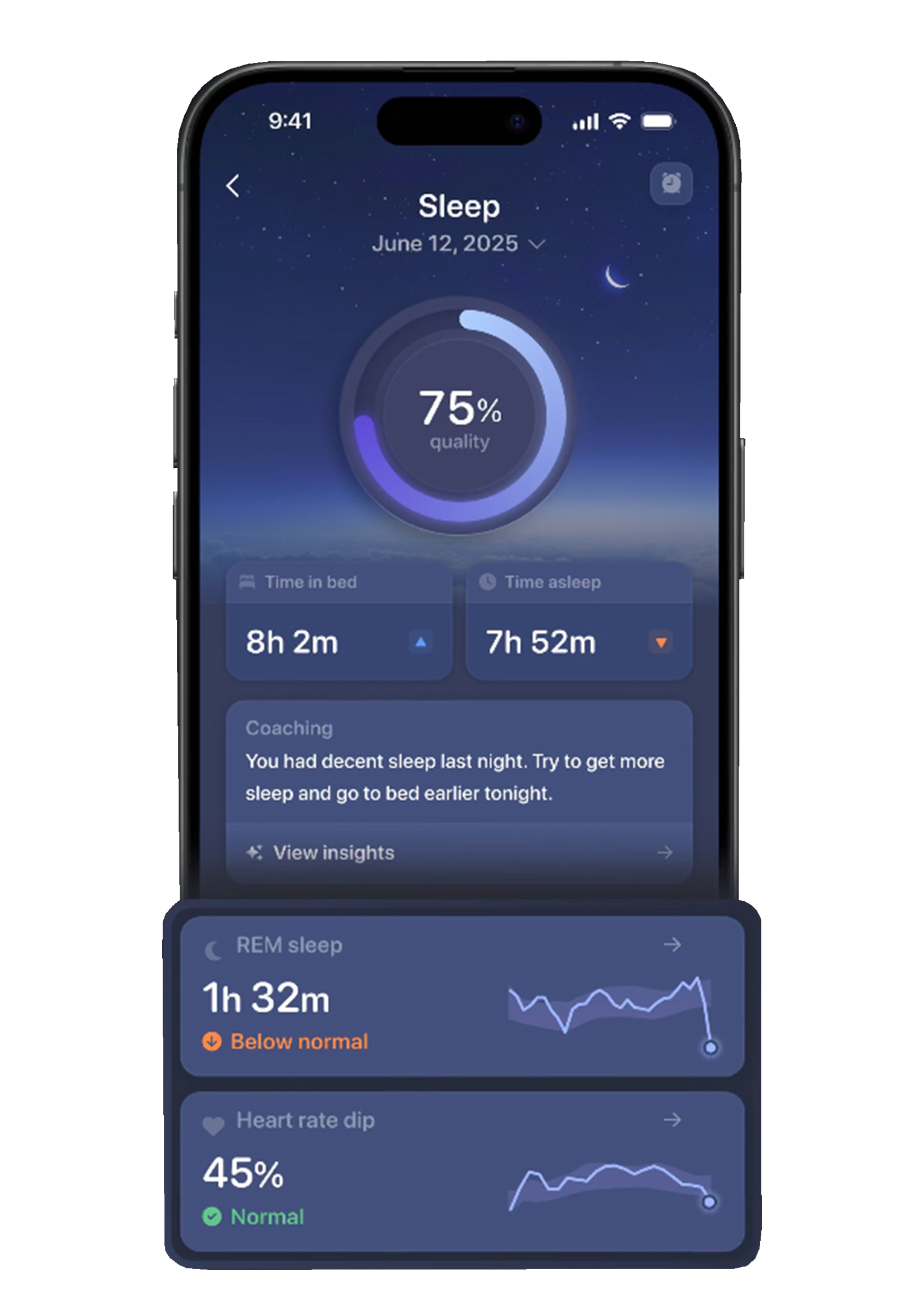 Now you can track your REM & Deep sleep in our app as well as overall sleep overview. By collecting this data you can plan your energy activities acordingly by improving your fitness data.