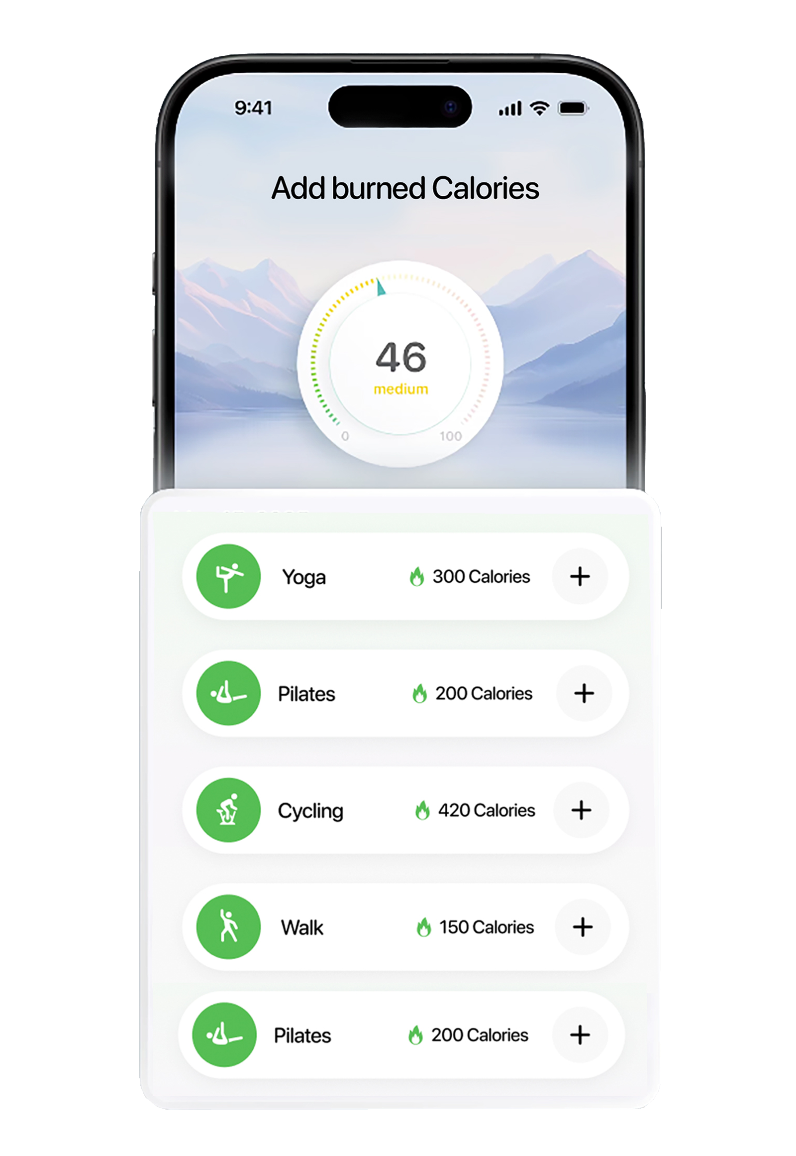 In our App you can track how many calories you burn daily by connecting our app to Apple health or by choosing manually your fitness activities and energy input.