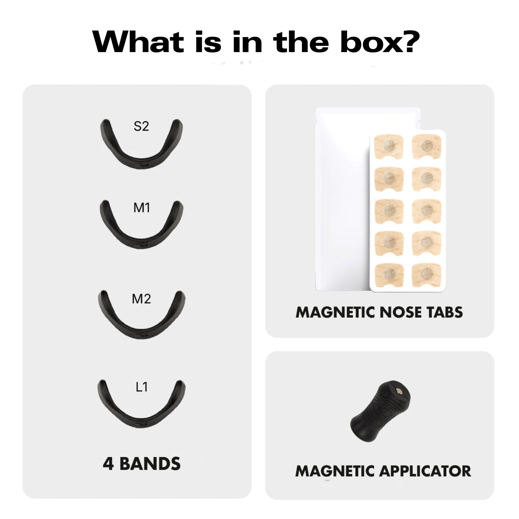 4 sizes of nose strips are included in the box - (most common): S2, M1, M2, L1.